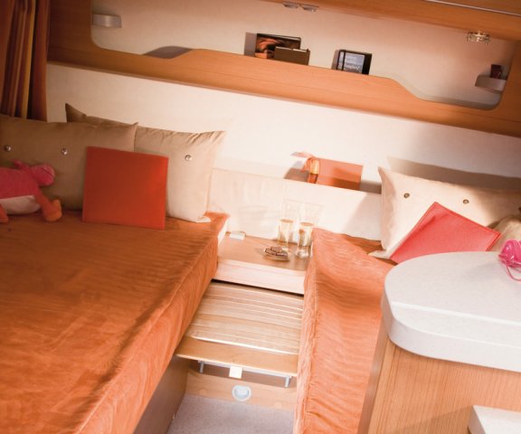 - Indirekte Beleuchtung in der Bugablage bei allen Einzelbett- und Queensbett Grundrissen